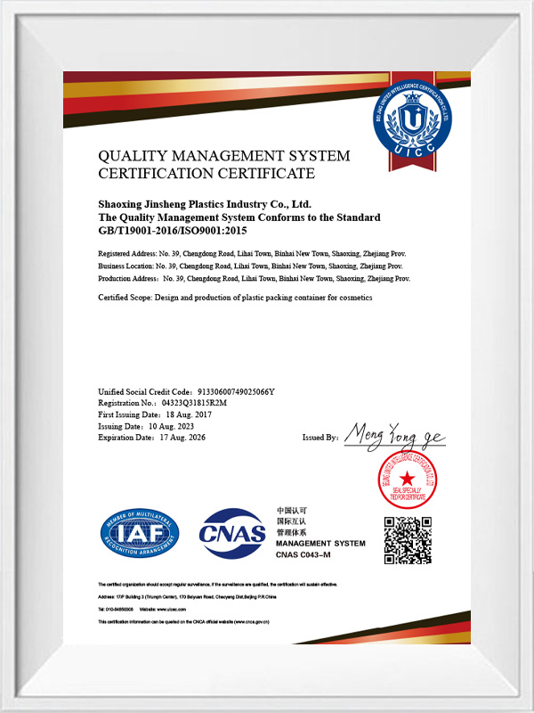 Jinsheng is committed to responsible and proactive workplace practices and providing sustainable packaging solutions to the beauty industry. Jinsheng is committed to optimizing "reduce, reuse and recycle" opportunities and focuses on ongoing strategies in the supply chain, manufacturing process and design of cosmetics and skin care packaging to create a sustainable and better future.
